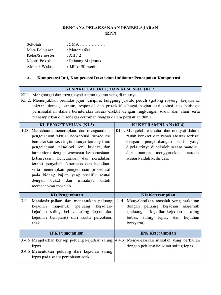 Rpp daring matematika kelas ix kurikulum 13 tahun 2020/2021 jumpa lagi dengan mgmpmatmagelang , kali ini kami coba share rpp daring untuk. 14 tahun 2019 dan sesuai dengan kebutuhan masa pandemi. Model silabus satuan pendidikan 24 a. Pemetaan silabus prakarya kelas 7. Quipperian, ternyata ada banyak banget yang bisa dipelajari dari materi peluang, lho. Silabus kelas 4 sd/mi kurikulum 2013 revisi 2020 ini telah mencakup semua tema, yang mana terdapat 8 tema pada pembelajaran k13 kelas 4. Selain itu perangkat pembelajaran ini juga dapat langsung di gunakan dan dapat di sesuaikan dengan kebutuhan dan kondisi di sekolah. Silabus matematika smk kelas xifull description. Tak disangka, permainan ular tangga menerapkan prinsip matematika yang disebut sebagai peluang. Kompetensi dasar** 070409 melakukan percobaan untuk menemukan peluang empirik dari masalah nyata serta menyajikannya dalam. Silabus k13 kelas 2 merupakan salah satu dari sekian banyak perangkat pembelajaran yang berfungsi sebagai penyusun kegiatan pembelajaran di kelas 2. Perangkat pembelajaran dapat diartikan sebagai sejumlah bahan, alat. Salam sejahtera buat bapak dan ibu guru yang sedang mengunjungi artikel ini.